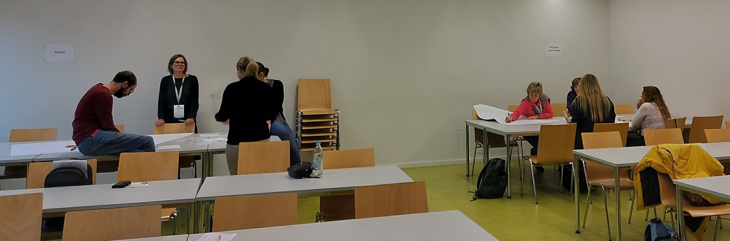 Työpaja pidettiin viimeisenä konferenssipäivänä. Osallistujia oli 12 eli ryhmä oli optimaalisen kokoinen. Aluksi esittelimme oppimateriaalin. Oppimateriaalin neljän osion rakenne on samanlainen, joten esittelimme numero- ja tilastojen lukutaitoa käsittelevän osion. Muut osiot olivat esillä työpajan pöydissä, eli valeuutiset, kuvat ja videot sekä tieteelliset artikkelit.