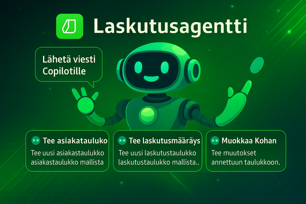 Oman agentin tekemistä kokeiltiin luomalla muun muassa kirjastotyöhön soveltuvat kuvailuagentti ja laskutusagentti. Laskutusmääräysten tekoon on toivottu jonkinlaista automaatiota. Ne tehdään nykyisellään käsin, ja vaikka työ ei ole vaikeaa, se vaatii paljon tietojen kopiointia kirjastojärjestelmästä. Visiona oli rakentaa laskutusagentti, joka mallipohjan avulla loisi valmiin laskutusmääräyksen kirjastojärjestelmästä otetun CSV-tiedoston perusteella. Copilot tuotti osittain järkevää dataa, mutta lopputulos ei kertaakaan ollut suoraan käyttökelpoinen laskutukseen. Lisäksi agentin kyvyttömyys tuottaa valmista ladattavaa Excel-tiedostoa aiheutti ongelmia.